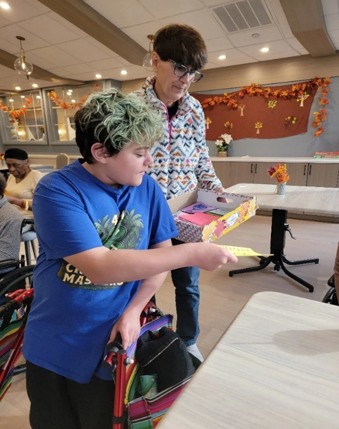 Residents were touched and pleasantly surprised by the unexpected gesture. Many paused what they were doing to accept a card, shake Vincent’s hand, share a smile, and express their thanks. Vincent proudly told them the cards were made by Somerset County 4-H, and his visit brought warmth and joy throughout the room.